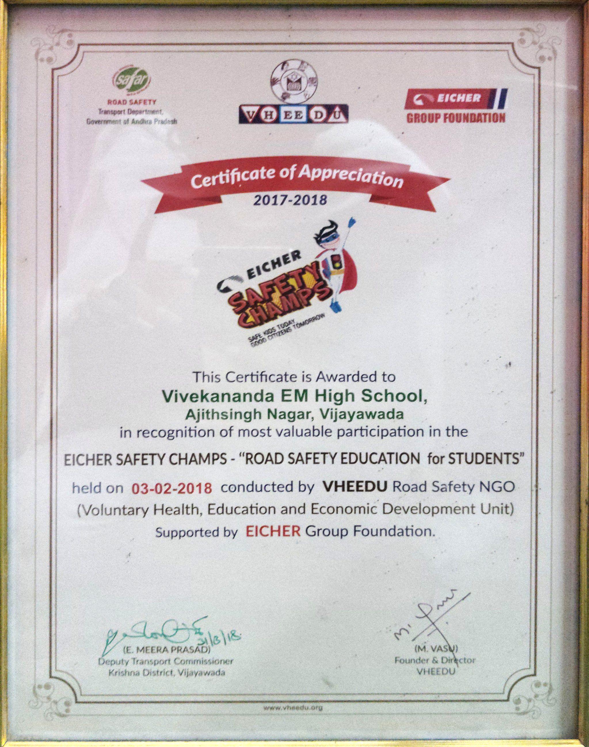 Participation in the Eicher Safety Champs - "Road Safety Education for Students" by VHEEDU Road Safety NG